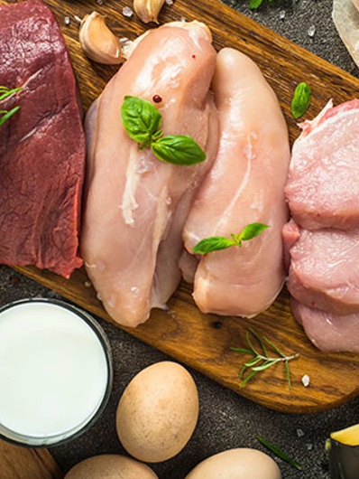 ✅ Choose the leanest cuts possible: like chicken breast, egg whites, fish, lean beef, or low-fat dairy.
